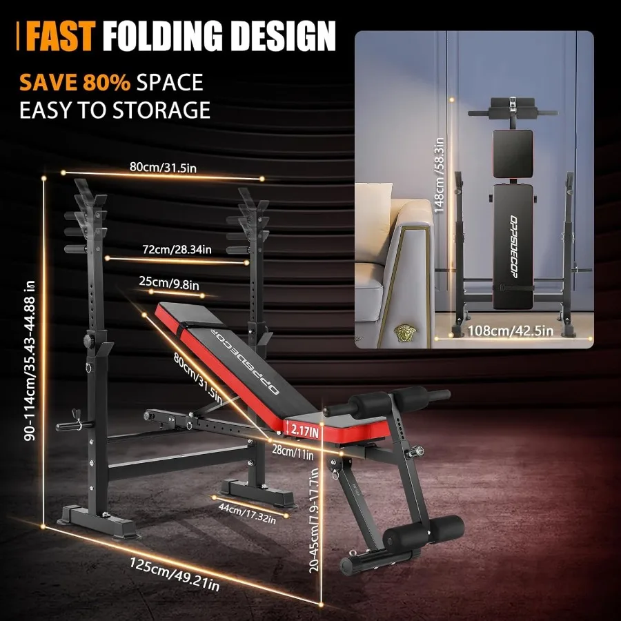 600LBS 6 in 1 Adjustable Weight Bench Set with Incline Decline Flat Sit-Up Function and Squat Rack Foldable Home Gym Workout Be
