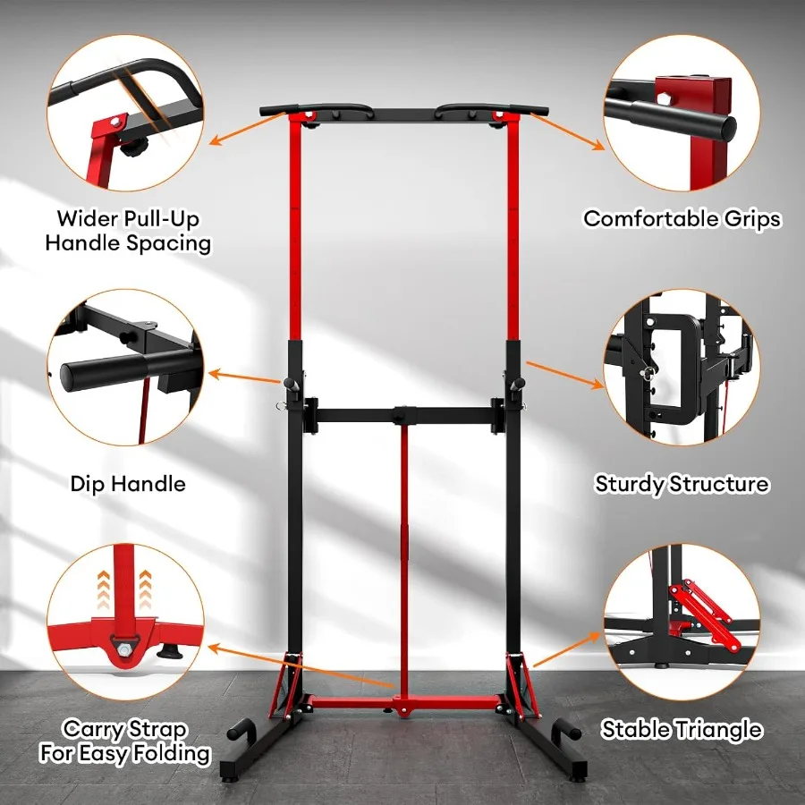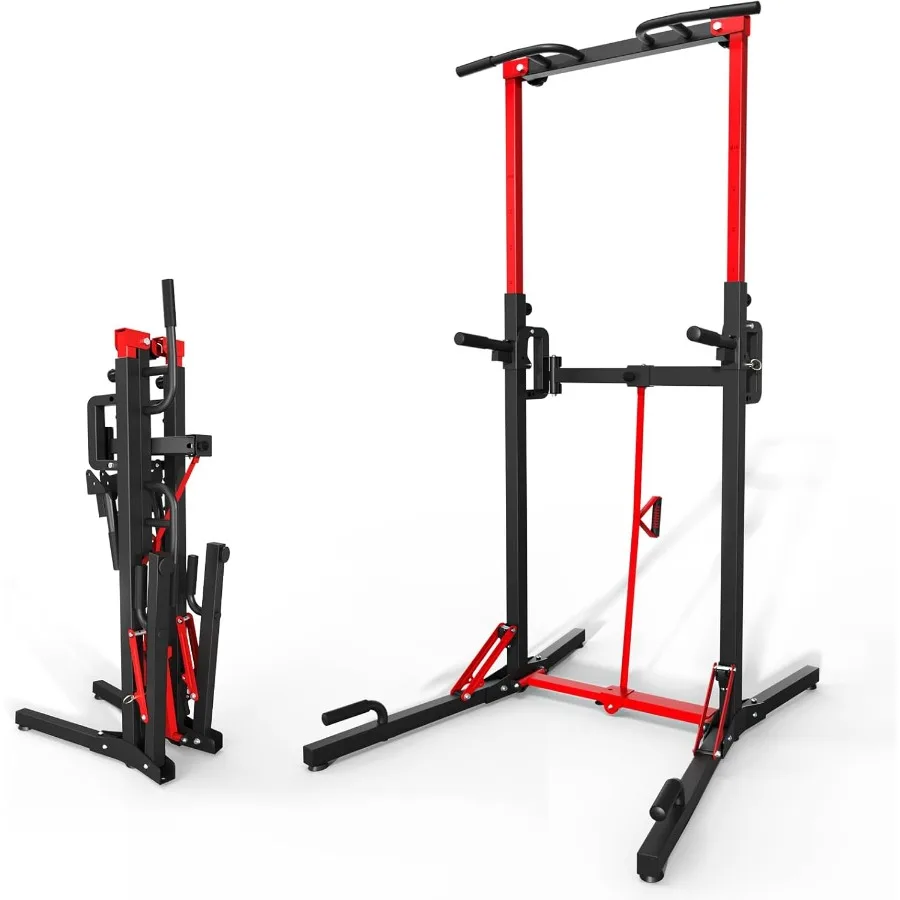 Foldable Power Tower Pull up Bar Station, Multi-Function Adjustable Height Dip Station for Home Gym Workout, Strength Training F