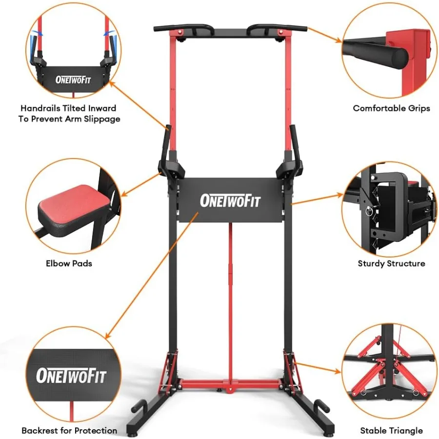 Foldable Power Tower Pull up Bar Station Multi-Function Adjustable Height Pull up Dip Station for Home Gym Workout Strength Tra