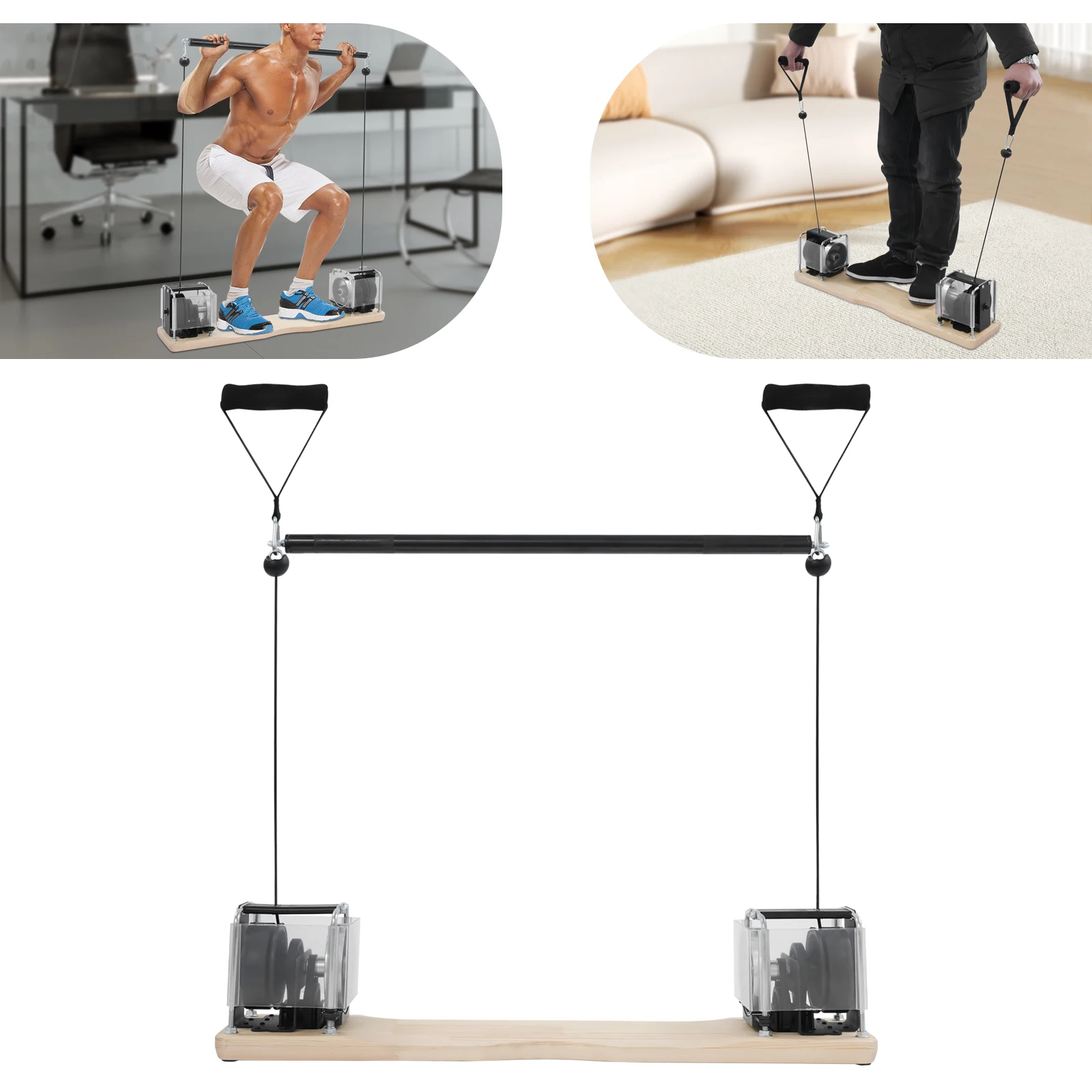 Steady Base: The rectangular wooden base expands ground contact area, effectively maintaining the equipment’s stability and providing a secure foundation for your workouts.