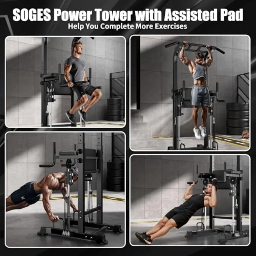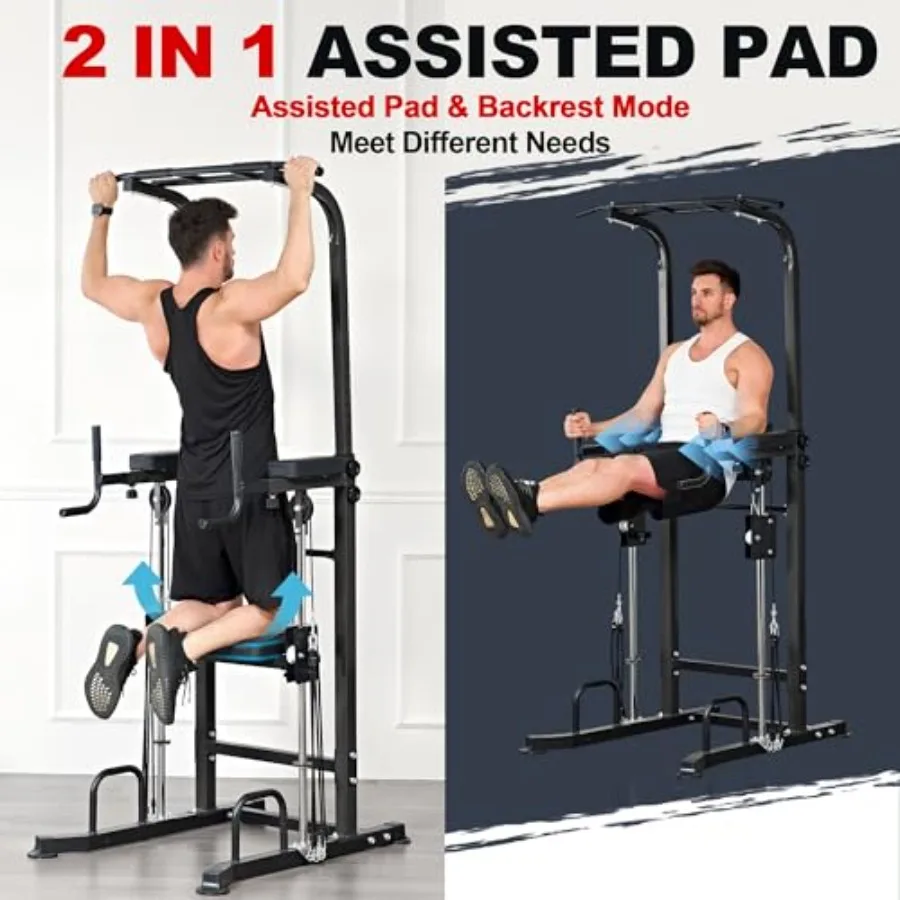 Power Tower Dip Station with Assisted Pad Height Adjustable Pull up Bar Station for Home Gym Multi-Function Strength Training F
