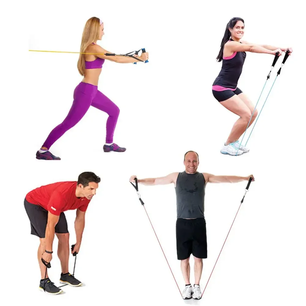 This resistance band set includes five exercise bands, one door anchor, two cushioned handles ,carrying case and user manual to allow you to perform the widest variety of resistance training exercises possible at home.