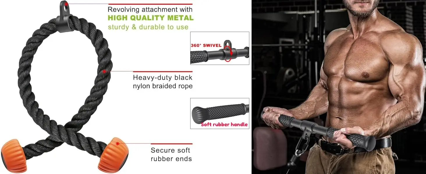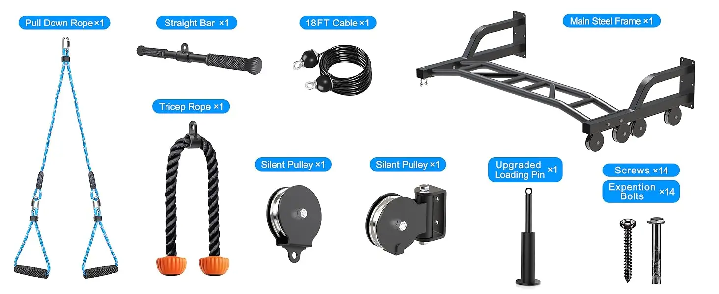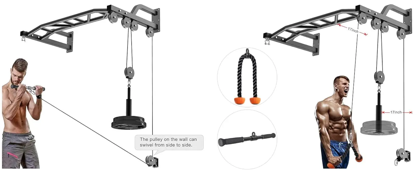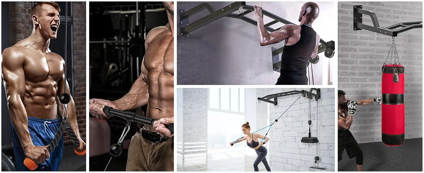 - You can get the training of a biceps curl, triceps pull down, latitude pull down, LAT pull up & downs, extensions fitness workout w/ the pulley system cable attachments.