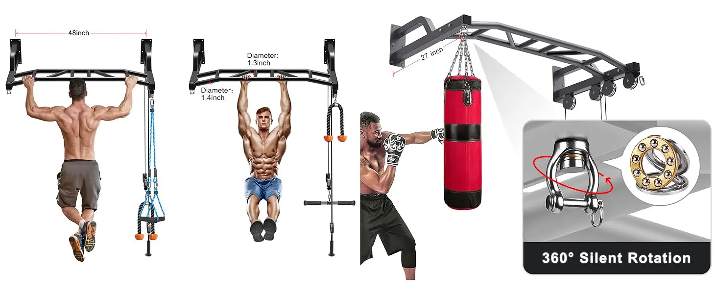 YOU-48'' Heavy Duty Pull up Bar Wall Mount Multi-Function Chin up Bar with Home Gym Cable Pulley System LAT Pulldown Workout